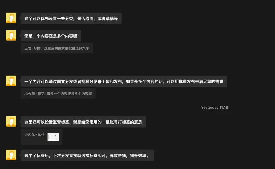 但是他们并没有解决我所有的问题,包括批量发布时,个别账号发布失败的问题依然存在,昨天有五个失败,今天有8个失败反而增多了,明天还要继续沟通。现在的发布效率相比竞品时间是更长的,希望明天能够顺利解决,能够长期使用。
