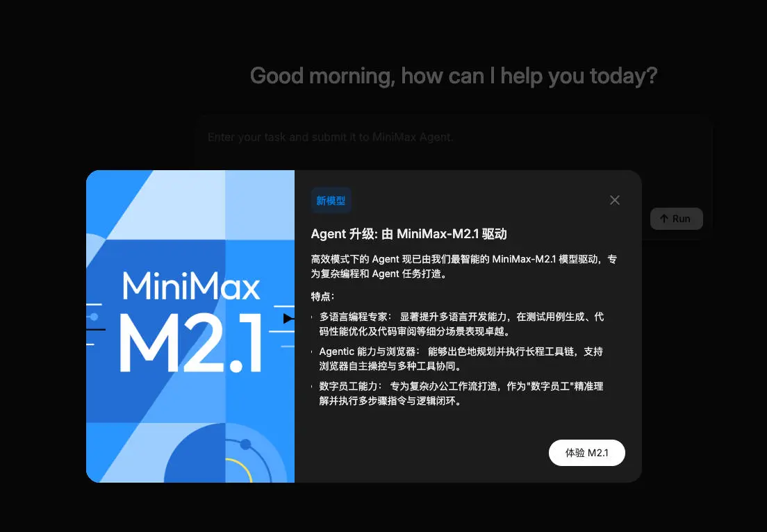 Agent 也进行了升级: 由 MiniMax-M2.1 驱动