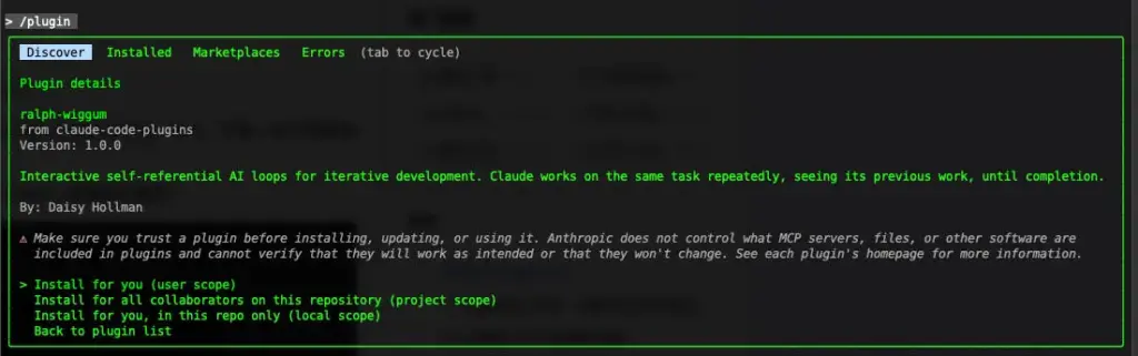 Ralph Wiggum 是一种迭代式人工智能开发方法论。在最纯粹的形式中,它是一个简单的 while 循环,反复向 AI 代理输入提示直到完成。安装/plugin marketplace add anthropics/claude-code-plugins /plugin install ralph-wiggum@claude-plugins-official 或者 用法/ralph-wiggum:ralph-loop "帮我解决弹窗重合的问题" --completion-promise "DONE" --max-iterations 10AI编程 Claude CodeHarrie我是王岩,2010年为了扩展自己的事业,我成立了一家互联网公司:上海岩创网络科技有限公司,2011年加入宏路数据任技术总监,2017年成立动乂岩数据技术有限公司同时兼任动点科技CTO。现在我正在搭建团队,在大数据、人工智能和新媒体领域进行探索。我的联系方式是:手机:13918304704 微信: harriewang QQ:13689186 公司网站:node100.com 欢迎大家跟我交流和讨论。所有文章相关文章2025年12月30日 最近通过通达信做了一个实验 接下来会基于AI大模型进行回测作者 Harrie2025年12月19日AI Programming 和 Vibe Coding有什么区别作者 Harrie2025年12月17日小米大模型 MiMo-V2-Flash 试用作者 Harrie上一页下一页
